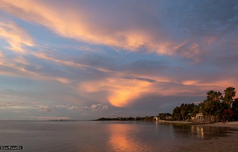 It was a glorious sunset, and this is the view looking North at the coastline and watching the dark pink clouds reflecting in the Gulf of Mexico. What an amazing scenery on Pine Island in Hernando County, Florida.