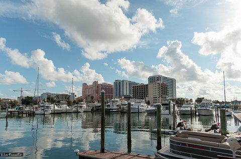 Clearwater Beach has a busy and picturesque little harbor with all kinds of boats. At this evening the puffy white clouds and the reflections in the water attracted my attention.