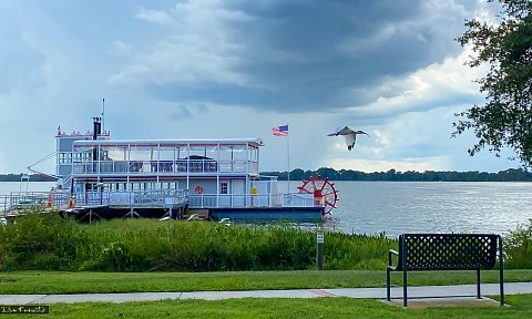 Storm is coming in and the Ibis birds are leaving this beautiful park in Mount Dora with the steamboat.