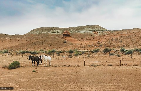 This is how horses live in the deserts. It's really hot in the summer and cold in the winter. No trees, no grass, nothing cozy to lay down on. And no one around to cuddle or talk to. It's absolutely a tough life, and not just for the horses (and we have seen a number of wild horses searching for water). The same goes for coyotes and rabbits and birds and even humans. It’s beautiful but rough.