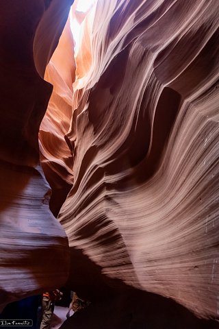 Here we see clearly how the water has washed out the canyon over many, many decades. The canyon is very narrow at this point. One can see two people (partly) on the bottom of the picture making their way through the canyon.