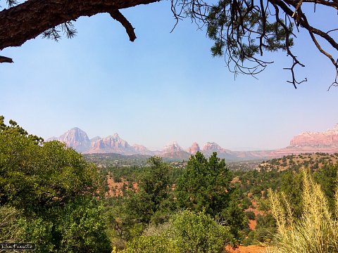 Morning haze covered the beautiful red mountains of Sedona, Arizona. The desert plants enjoyed it tremendously.