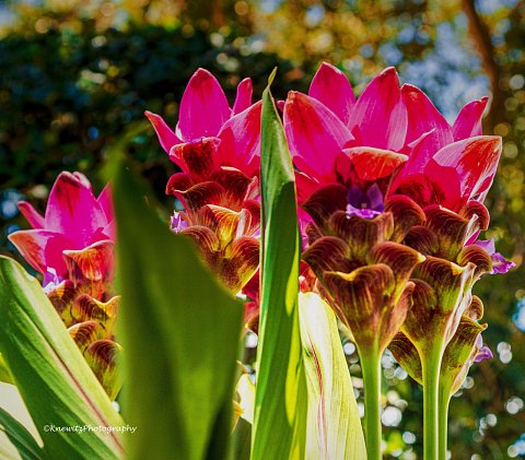These Tumeric flowers are blooming in front of our house from spring time to fall.