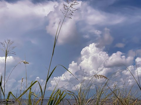 A lovely day at Tarpon Springs Beach with view of the Gulf of Mexico behind the seagrass.