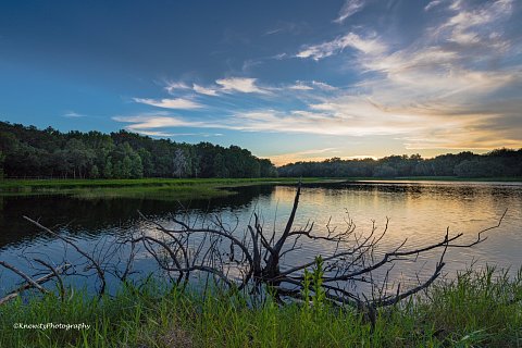 This gorgeous sunset with the rays going up into the sky is also reflecting in the pond which I really liked.