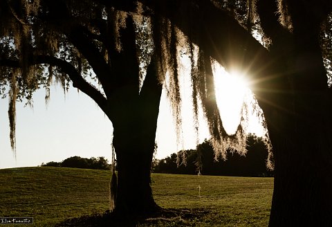 A typical Florida scenery with the sunrays lightening up the grey colored moss, which is holding on, no matter if it's storming or brutally hot.
